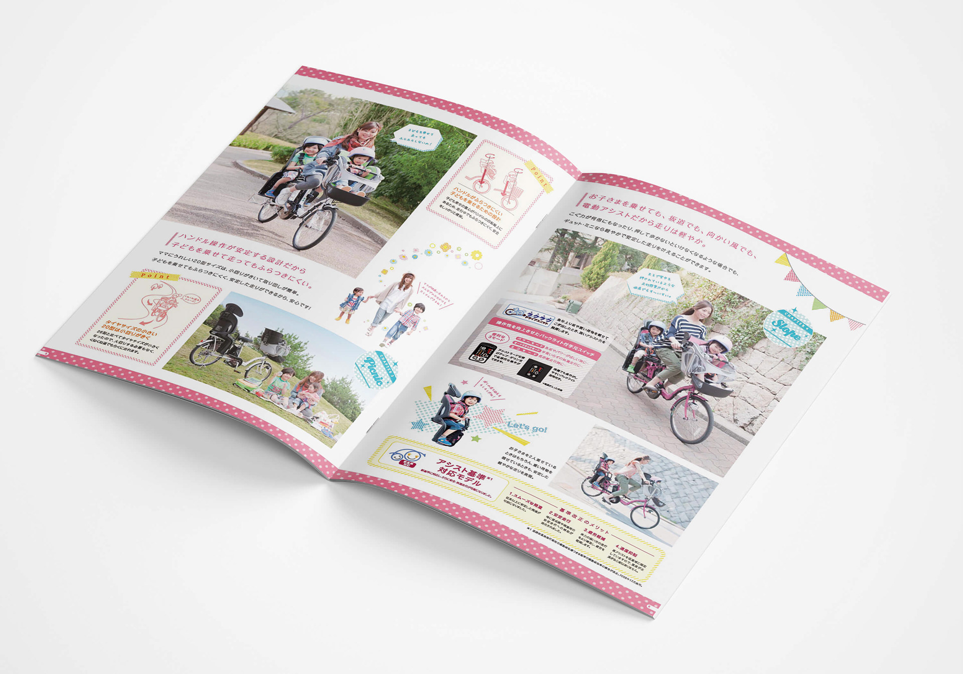 パナソニックサイクルテック様の電動アシスト自転車ギュットミニのパンフレット、ポスター、POPなどのデザインを担当しました。