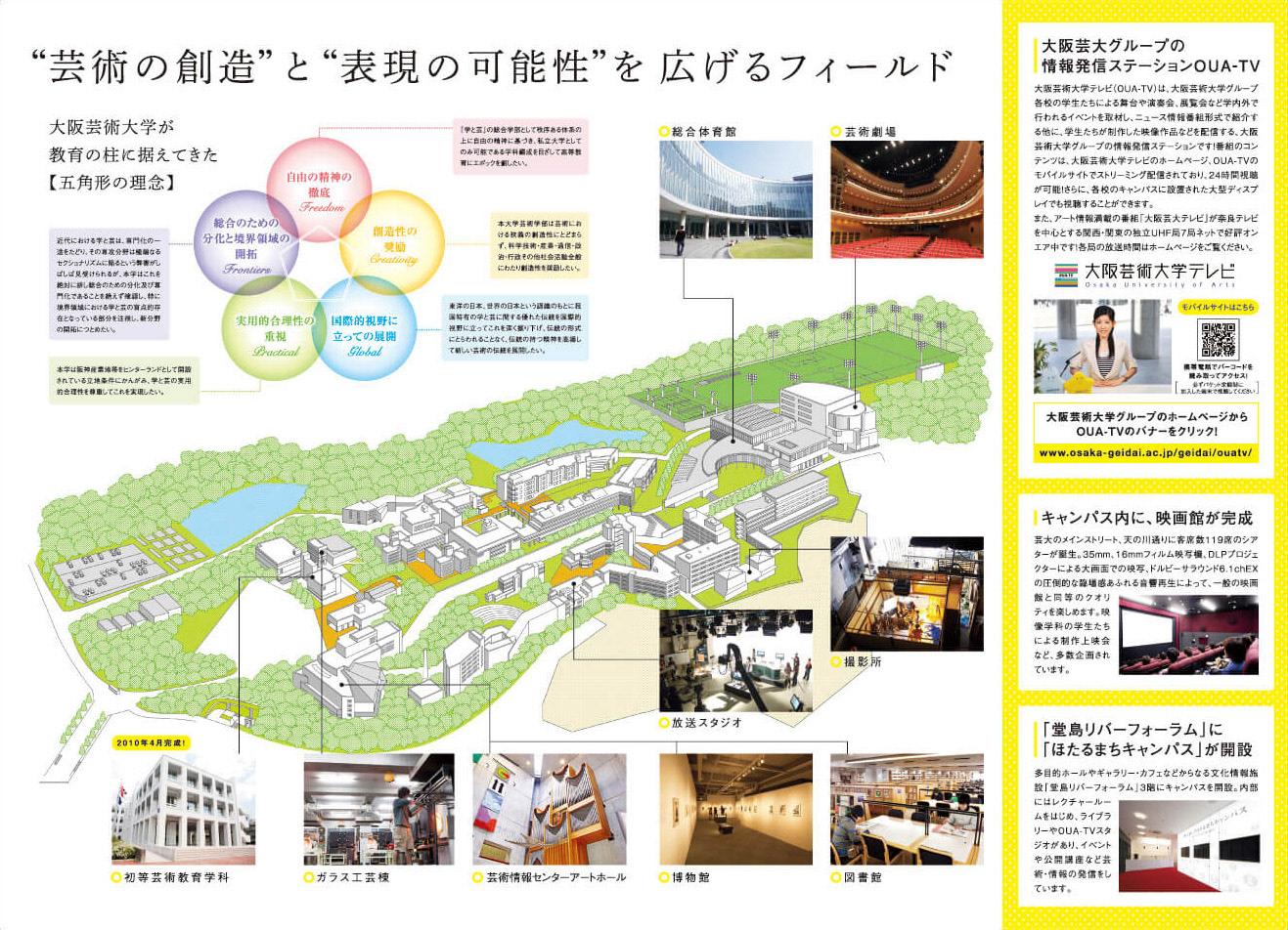 大阪芸術大学のプレパンフレットの制作をしました。MAPもテイストに合うように描き起こしています。