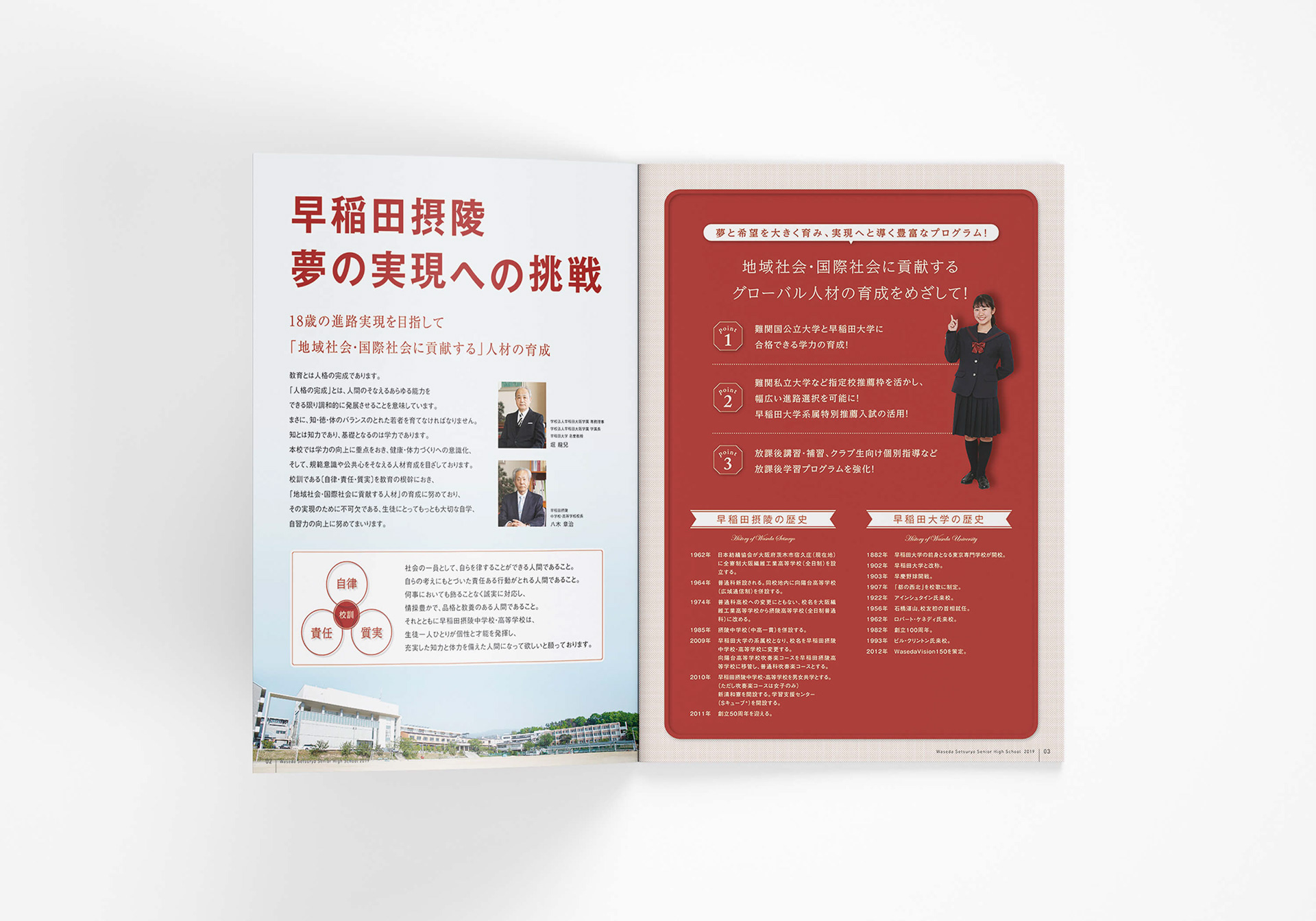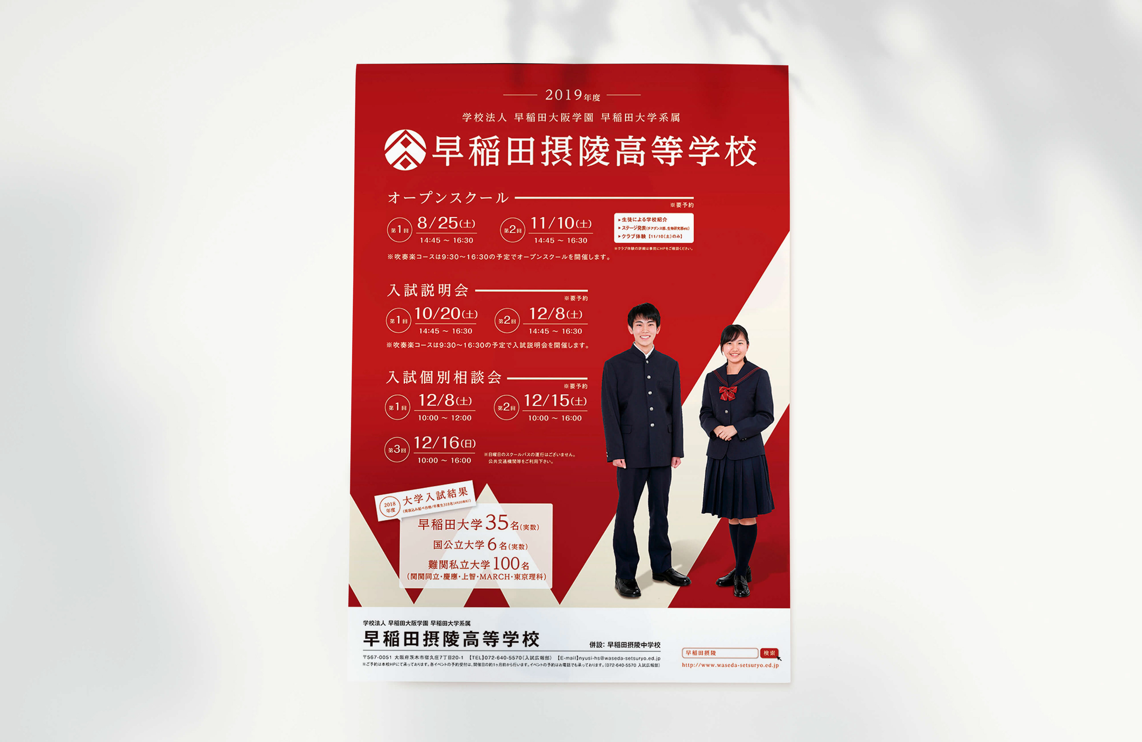 2016~19年度 早稲田摂陵高等学校様の学校案内・ポスター・フライヤー・寮パンフレット・吹奏楽部用パンフレットなど制作させていただきました。