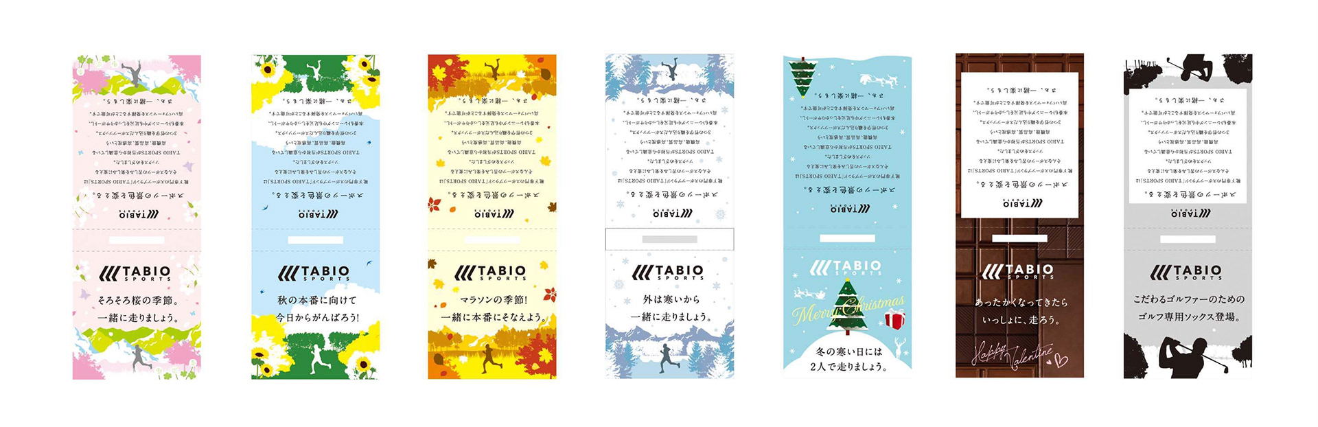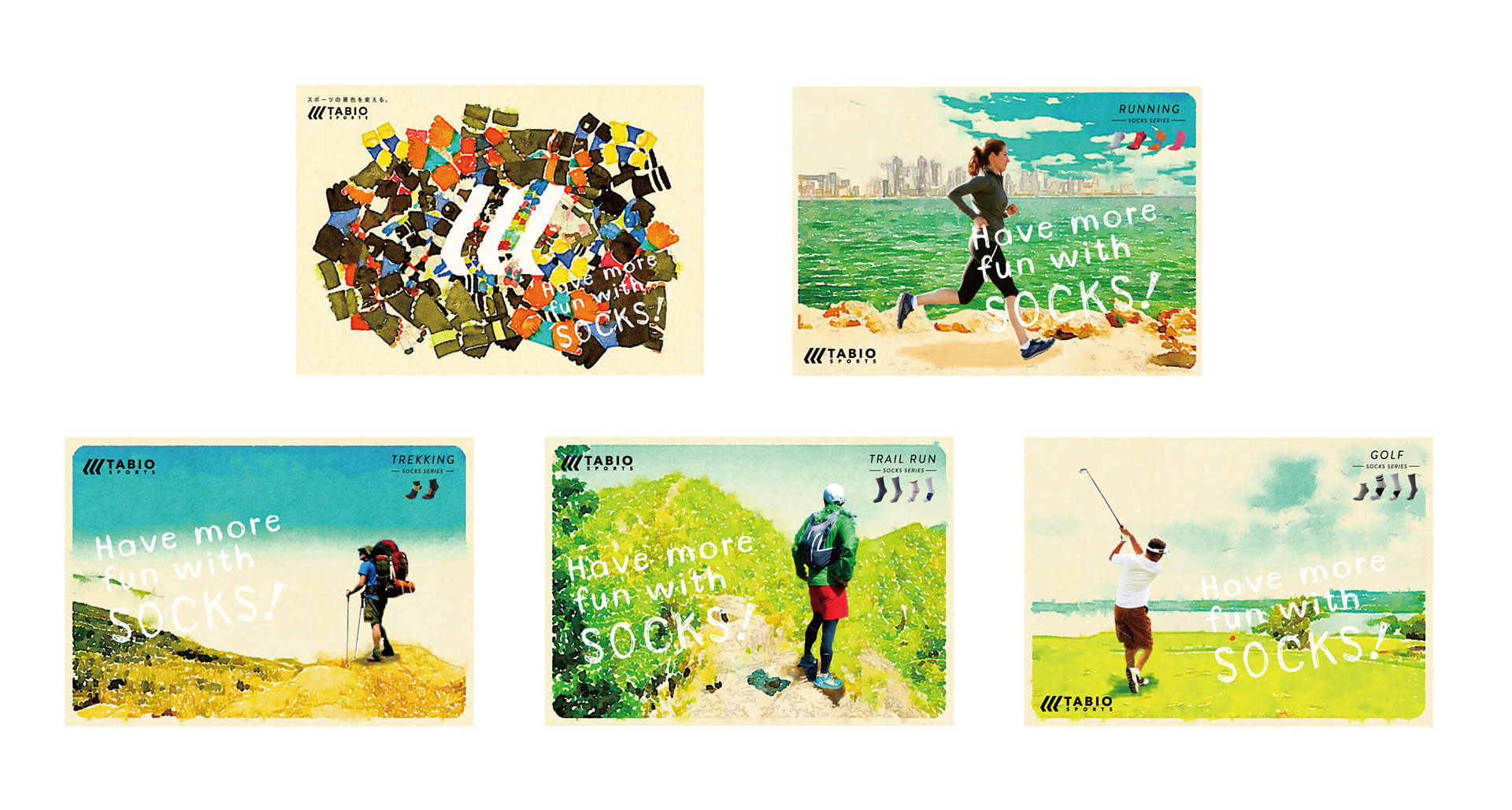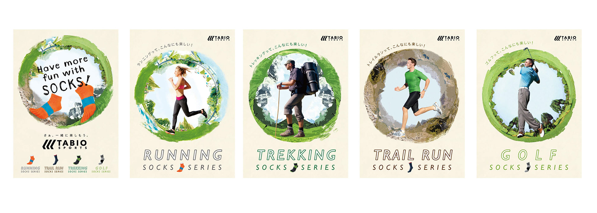 タビオスポーツ様のメインビジュアルおよびカタログやファンツール・店頭POPやタグなど、様々なツールをご提案させていただきました。残念ながら企画自体なくなってしまいましたが、ロゴとコピーとビジュアルがうまく絡んで気に入っている案件です。