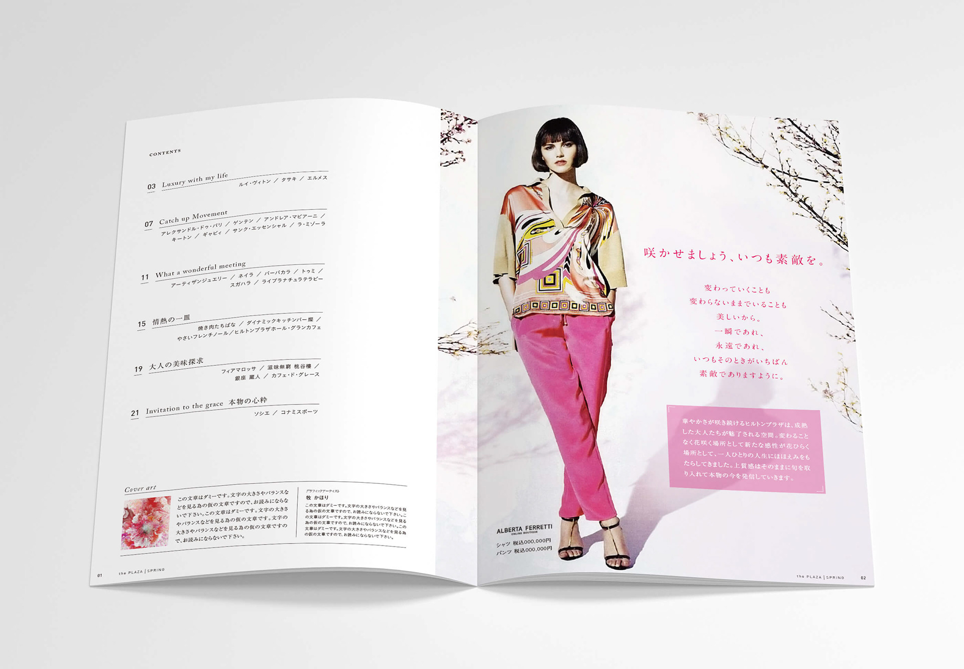 ヒルトンプラザ様の季刊誌のご提案をさせていただきました。残念ながら提案止まりでしたが、グラフィックアーティストの牧かほりさん等メインに提案し個人的に気に気に入っている案件です。