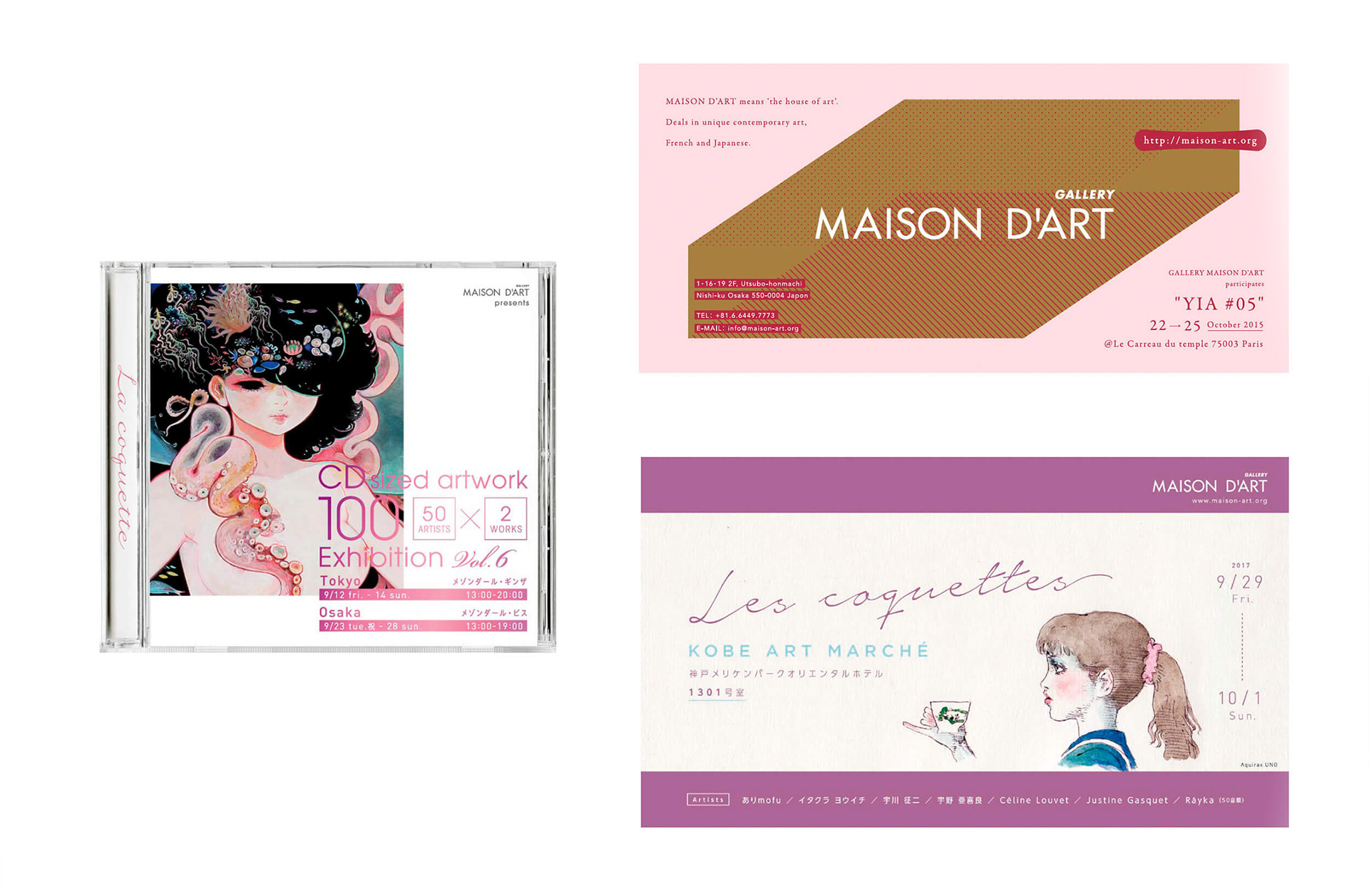 大阪市の靱公園の近くにあるアートギャラリーメゾンダール のDM・フライヤーをいくつかデザインさせていただきました。