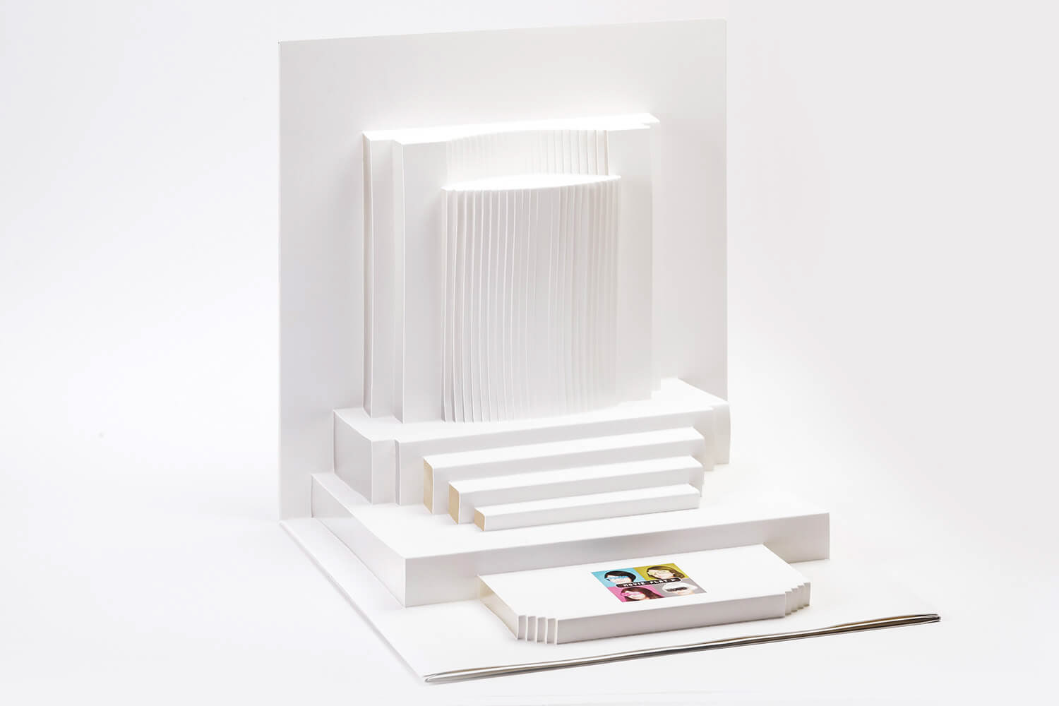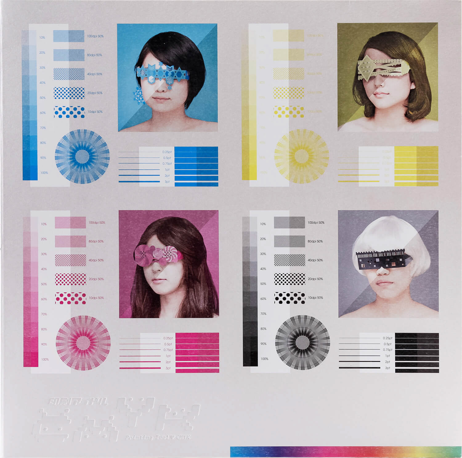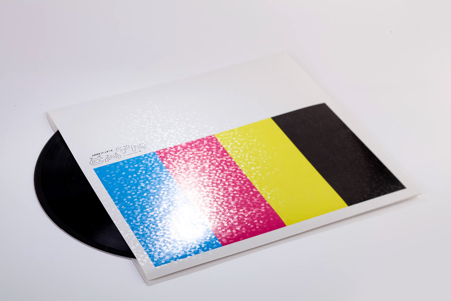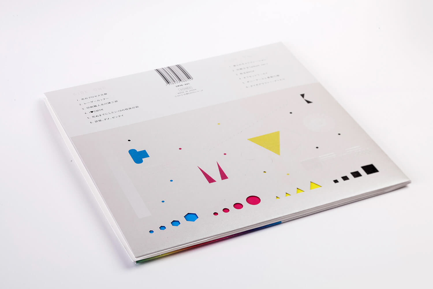印刷会社との展示会「印刷EXPO」にてテーマ「印刷アイドルCMYK」のレコードジャケットを制作。特殊紙にホワイト印刷+オフセット印刷・ニス加工・型押し・型抜き・スリット入れ等加工をし、色見本・加工見本にもなるジャケット。中身を開くとポップアップステージになり、スマホをかざすとムービーが流れステージ上でライブをしているように見える仕組み。様々な加工技術とAR技術をアピールした作品。