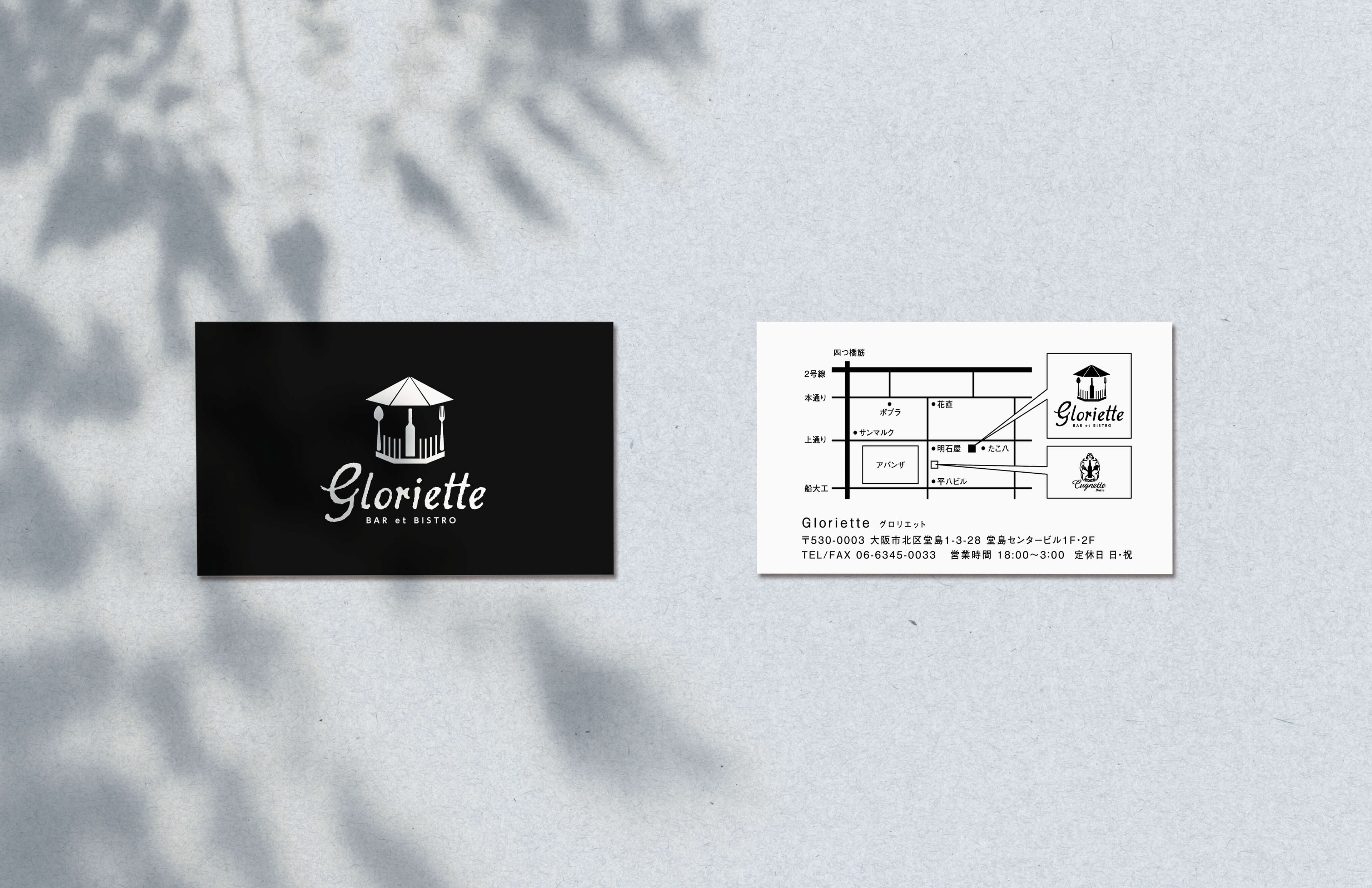 ビストロ・ワインバーGloriette様のロゴとショップカードをデザインさせていただきました。