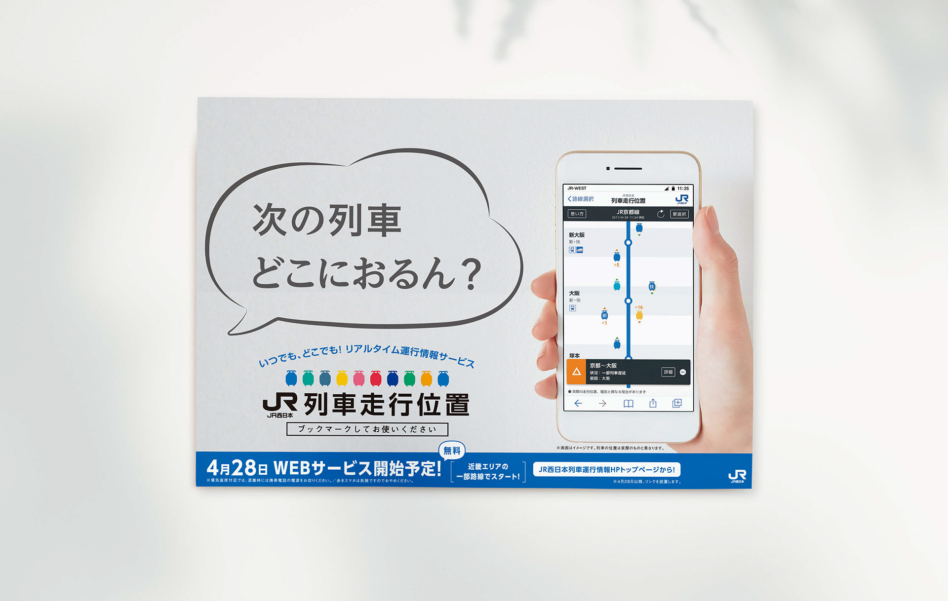 JR西日本様のアプリ列車走行位置のB1ポスターやデジタルサイネージのデザインを担当させていただきました。