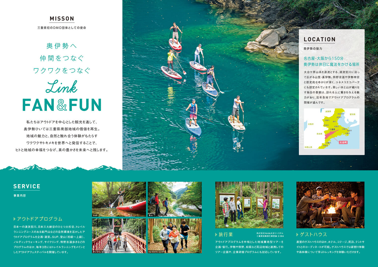 Verde大台ツーリズム様の会社案内、スタッフTシャツ、名刺などツール一式のデザインを担当しました。